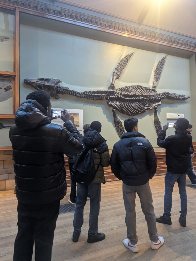 The young people also attended an enriching trip to the Natural History Museum, where they were captivated by the vast range of exhibits – from the smallest specimens to the iconic blue whale skeleton and the impressive dinosaurs of the Mesozoic Era. They engaged enthusiastically throughout the visit, taking photographs and exploring the striking architecture of Hintze Hall, appreciating both the scientific displays and the beauty of the building itself. The experience was met with great enthusiasm and gratitude.